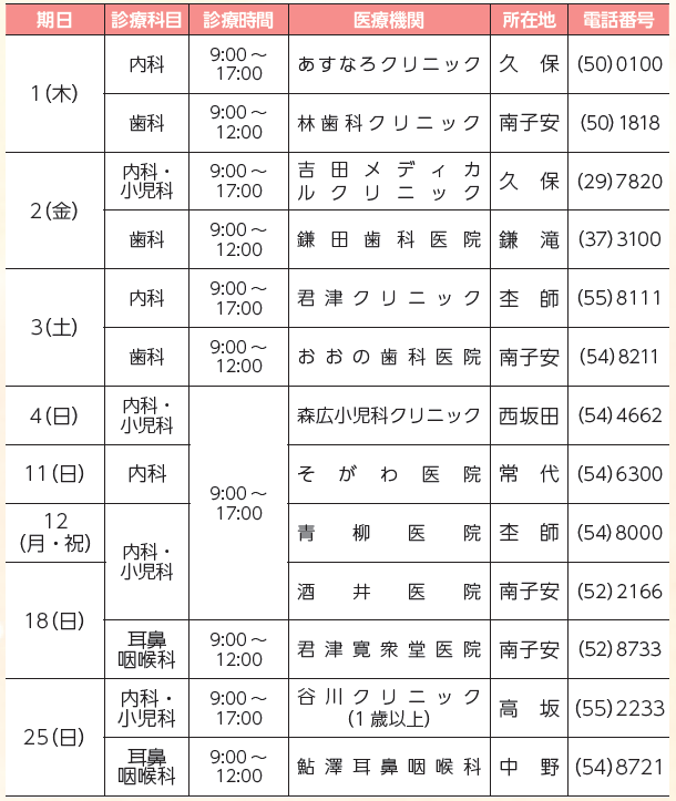 ・当番医は変更になる場合があります。当日の朝刊も確認してください