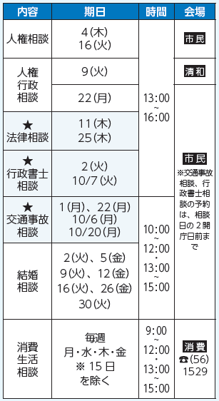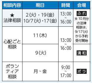 注意事項:法律相談は、継続して受けることができません。(年1回程度)