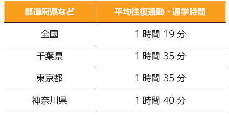 総務省が令和3年に行った調査によると、千葉県の平均通勤・通学時間は1日あたり1時間35分です。公共交通を利用することで、この移動時間を読書、勉強、休憩、睡眠などにあてられます。(出典:令和3年度社会生活基本調査)