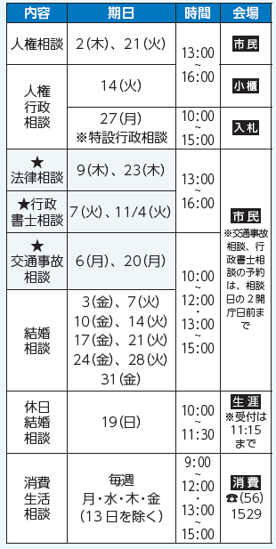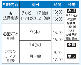注意事項:法律相談は、継続して受けることができません。(年1回程度)