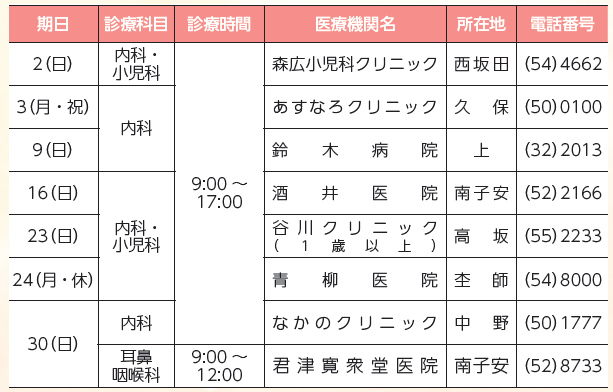 当番医は変更になる場合があります。当日の朝刊も確認してください。