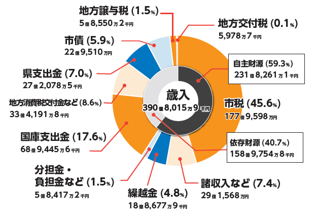 地方交付税…国税の一部から市の財政状況に応じて交付されるもの