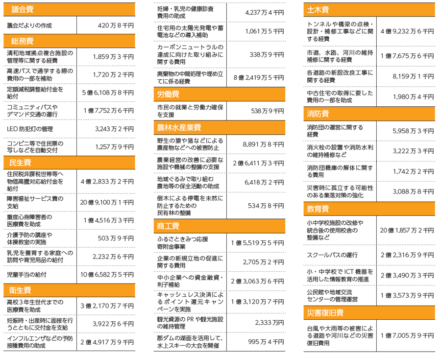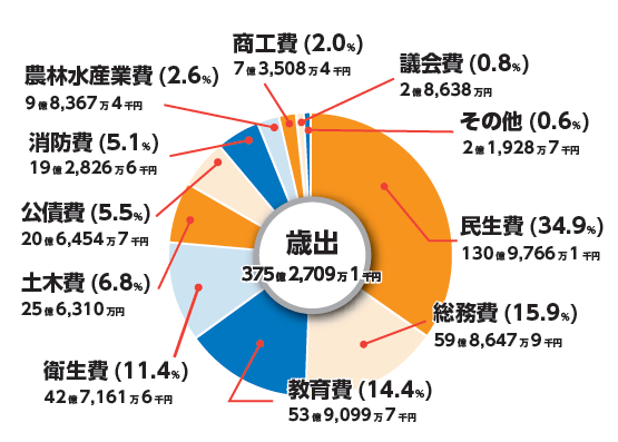 総務費…市役所の管理・運営やバスの運行、徴税などに要する経費