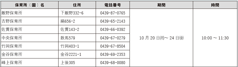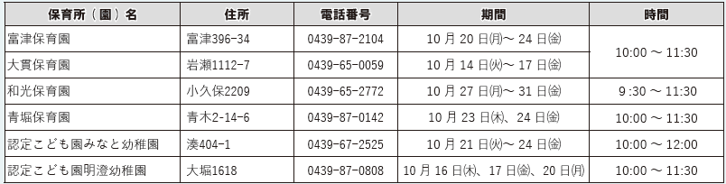 皆さんに保育の様子を知ってもらうため、市内保育所(園)・認定こども園を公開します。