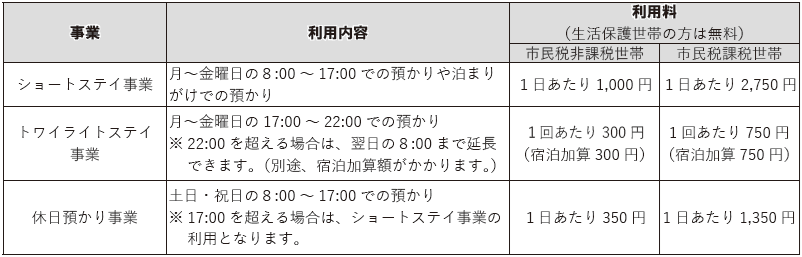 保護者の仕事や育児疲れ、病気などにより、家庭でお子さんをみることが難しいときに、市が委託する施設で保育士の資格などをもつスタッフがお子さんをお預かりします。初めての方でも安心してご利用いただけるよう、申請前にお子さんと一緒に施設を見学することもできます。