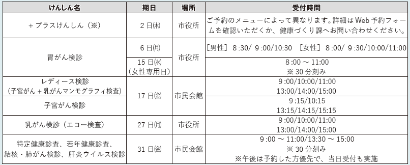 予約期限:各けんしんの前日まで