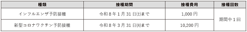 接種期間:令和8年1月31日(土)まで