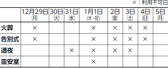 年末は12月27日(土)11時30分で終了します。年始は1月5日(月)9時から開始します。
