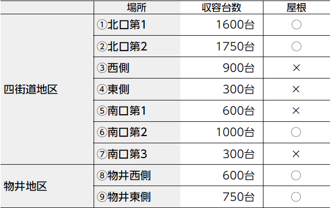 ※自転車等駐車場の位置図などの詳細は、「四街道市営自転車駐車場・市営駐車場ホームページ」をご覧ください