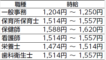 ※四街道市役所や資格職として企業などで勤務した職務経験に応じて時給が異なります