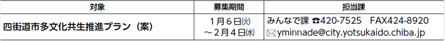 意見提出方法:募集期間内に、意見書(様式は任意)に必要事項(住所、氏名、連絡先)を記入の上、担当課まで郵送、持参、FAXまたはメールで提出