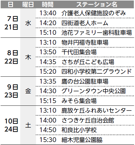 ■ドリーム号巡回予定