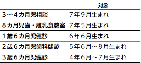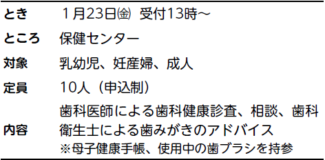 持ち物:母子健康手帳、筆記用具、使用中の歯ブラシ