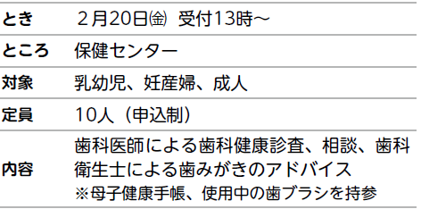 問合せ:健康増進課【電話】421-6100