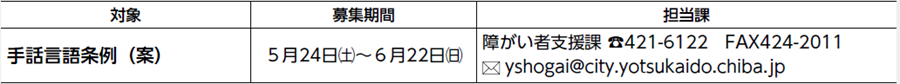 意見提出方法:募集期間内に、意見書(様式は担当課窓口、市ホームページから入手可能)に必要事項(住所・氏名・連絡先)を記入の上、担当課まで郵送、持参、FAXまたはメールで提出