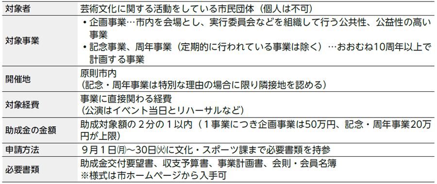 ■助成金を交付します 芸術文化振興助成金の要望申請を受付開始