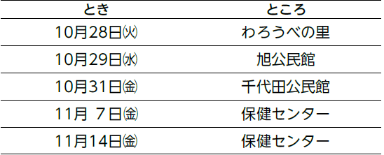 ※2月まで毎月2回ずつ開催予定です。開催日は市政だよりとホームページでお知らせします