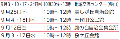 申込み:9月1日(月)13時〜電話で同センターまちっこ