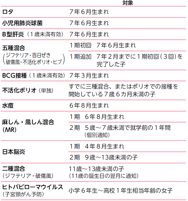 ※平成7年4月2日~19年4月1日生まれの人は日本脳炎の接種が20歳未満まで可能