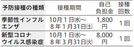 10月1日(水)から、高齢者に向けた季節性インフルエンザと新型コロナウイルス感染症の定期予防接種が始まります。