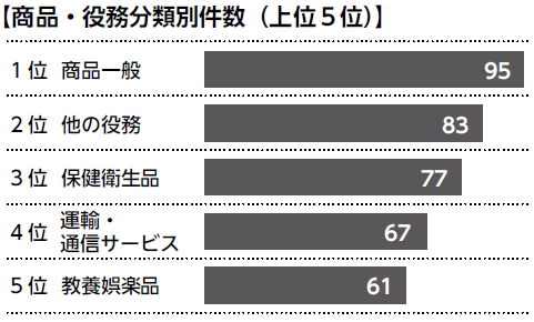 他にも、給湯器、配電盤、屋根の点検(他の役務)、化粧品や健康食品などの定期購入(保健衛生品)、インターネット回線の契約(運輸・通信サービス)、スマートフォンやパソコン(教養娯楽品)などの相談も多く寄せられました。ネットでの通信販売は便利ですが、クーリングオフの制度はありません。慌てて購入せずに、注文前に事業者の契約条項などをしっかり確認しましょう。