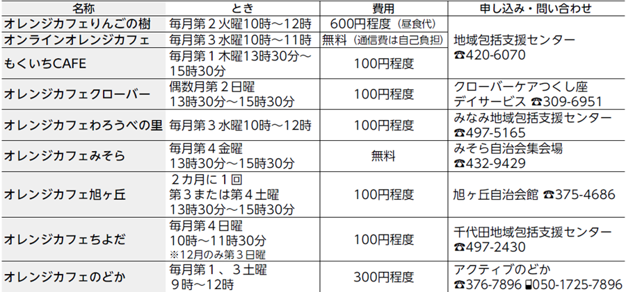 ※オレンジカフェりんごの樹、オンラインオレンジカフェは事前の申し込みが必要です