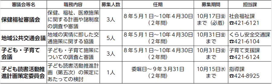 ※詳細は、募集要項をご覧ください。募集要項は担当課窓口(平日のみ)