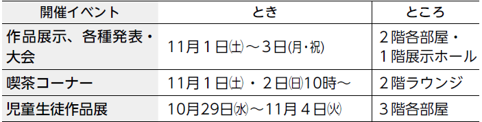 日時:11月1日(土)~3日(月・祝)9時~16時(予定)