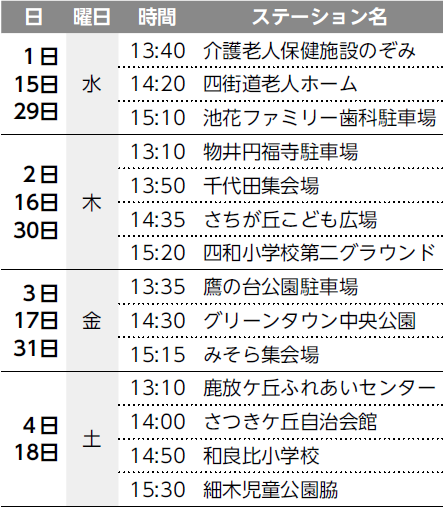 巡回日や急な巡回中止などの情報を図書館X(旧Twitter)(@yotsukaido_lib)で発信しています