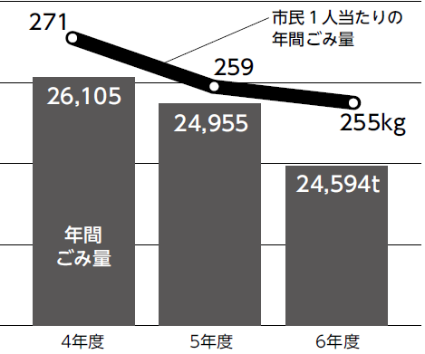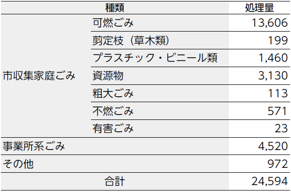 6年度にクリーンセンターで処理したごみの量は、2万4594トンでした(表1)。5年度と比べ361トン(約1・4%)減少しました。