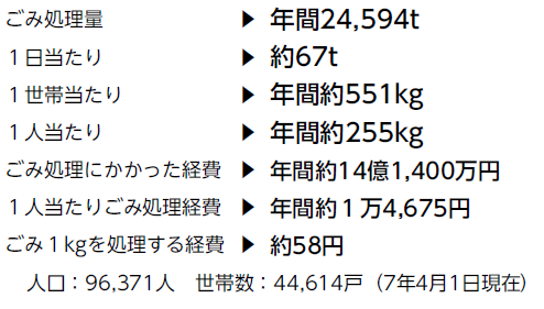 この金額を1日当たりにすると約387万円になります。一人一人のちょっとした心掛けと積み重ねで、ごみを減らし、ごみ処理にかかる費用も減らしていきましょう。