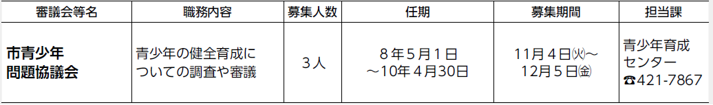 ※詳細は、募集要項をご覧ください。募集要項は担当課窓口(平日のみ)、市ホームページから入手可