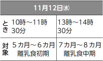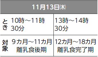 内容:遊びのコーナー、わくわくタイム、親子遊びなど