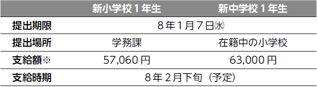 8年4月に本市立小中学校または国、千葉県が設置する小中学校に入学予定の子どもの保護者で、就学援助制度の支給を認定された方は、支給費目の1つである「新入学学用品費」を入学前に受給することができます。