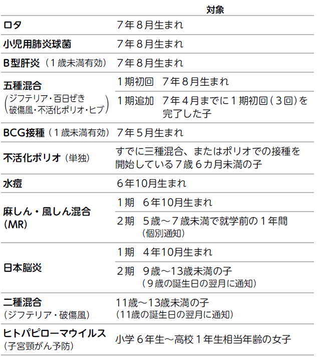 ※平成7年4月2日~19年4月1日生まれの人は日本脳炎の接種が20歳未満まで可能