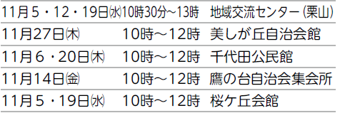 申込み:11月10日(月)9時~電話で同センターすずらん