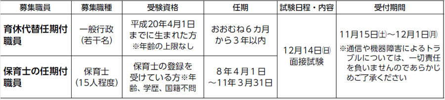 ※詳細は、募集要項をご覧ください。募集要項は担当課窓口(平日のみ)