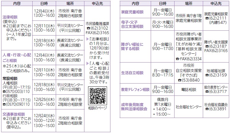 くらし 相談案内 39/45 前の記事 次の記事 発行日 : 2025年12月01日 自治体名 : 千葉県袖ケ浦市 広報紙名 : 広報そでがうら 2025年12月1日発行 第1068号 祝日や相談員の都合により、開催しない場合があります。 Tweet シェアする 緊急連絡先などのご案内 12/3~9 障害者週間