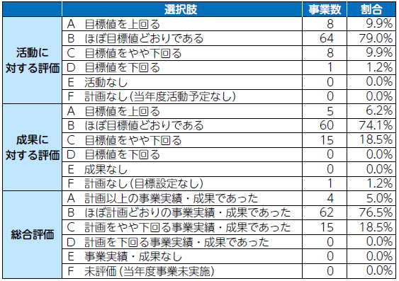 各事業について、「活動」と「成果」の2つの視点から総合評価を行いました。