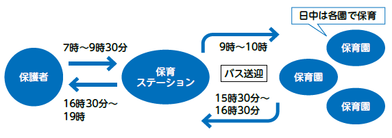 令和8年4月から、保護者に代わりこどもをバスで保育所などへ送迎する送迎保育ステーションを開設します。