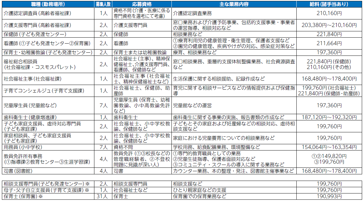 ※11月任用の募集結果により、募集有無や人数変更の場合あり。最新の情報は、職員情報サイト(パブリックコネクト)から(11月公開予定)