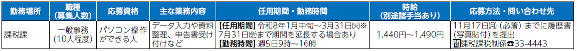 その他:選考方法は書類審査、面接(11月~令和8年1月)を実施。募集案内は、職員情報サイト(パブリックコネクト)を確認