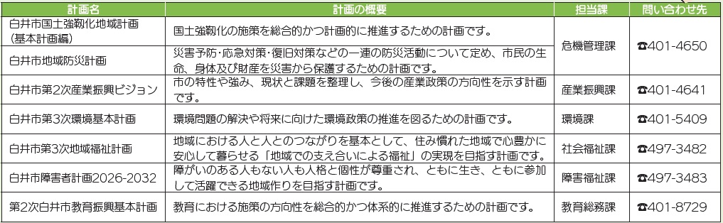 計画の策定・見直しにあたり、意見を募集します。各計画についてのお問い合わせは、担当課へお願いします。