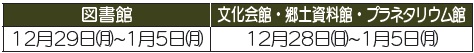 ■文化センター(文化会館・図書館・郷土資料館・プラネタリウム館)は下表のとおり、休業します
