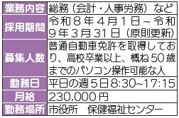 申込み・問合せ:12月22日(月)までに市ホームページを確認の上、人事課