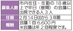 申込み・問合せ:1月26日(月)までに所定の申込書(窓口、各センター、市ホームページ)を(〒270-1492)白井市復1123企画政策課へ郵送、企画政策課