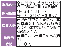 申込み・問合せ:2月27日(金)必着までに履歴書(写真貼付)を郵送(〒270-1492)白井市復1123市社会福祉協議会へ郵送、市社会福祉協議会