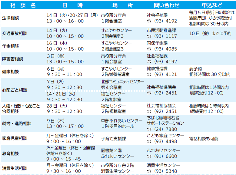 くらし 相談窓口 25/36 前の記事 次の記事 発行日 : 2025年10月01日 自治体名 : 千葉県富里市 広報紙名 : 広報とみさと 令和7年10月号 ・相談は無料で秘密は厳守されます。 ・相談時間は12:00~13:00を除きます。 Tweet シェアする 健康広場ーとみさと元気なまち宣言ー(2) 急病のときは?