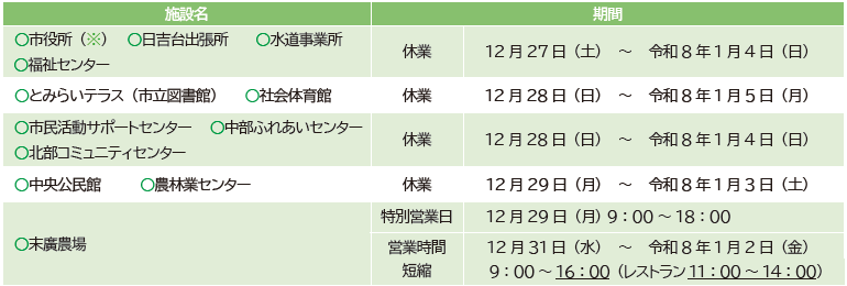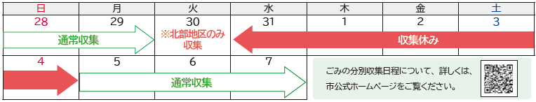 12月30日(火)から令和8年1月4日(日)までは、北部地区以外のすべての収集がお休みになります。