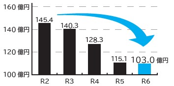 将来にわたって計画的に元金と利子を返済するため、市債の発行は、過度な将来負担を招かないように慎重に行っています。よって市債現在高は、上のグラフのとおり、計画的に抑制できていることを示しています。